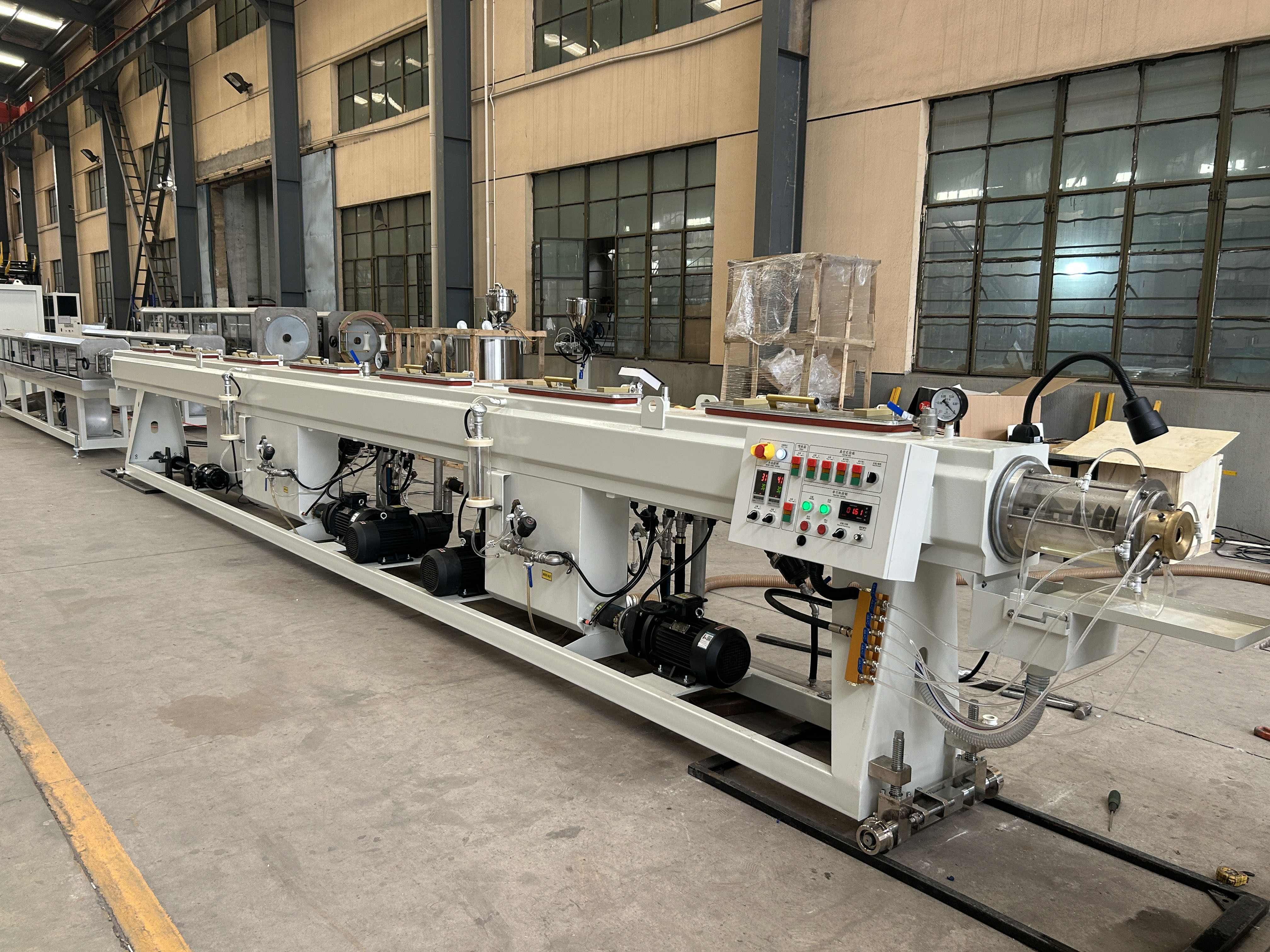 De extrusielijn omvat extruder, vacuüm kalibratietank, koelsysteem, afvoereenheid, snijmachine en stapelsysteem, wat zorgt voor een naadloos productieproces. Met PLC-besturing en energiebesparende functies garandeert deze machine een consistente productkwaliteit, een laag energieverbruik en minimaal afval.