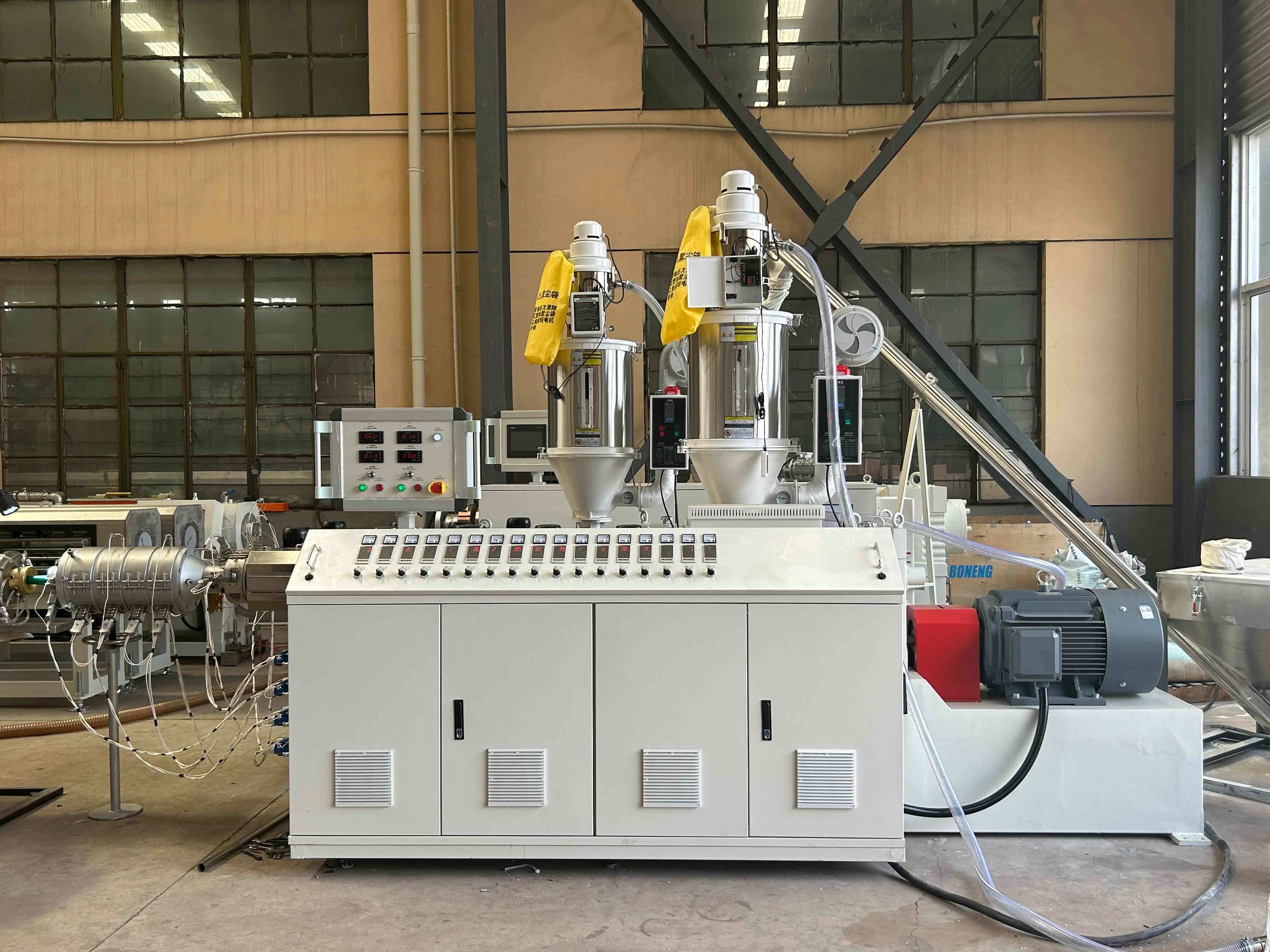 Ideaal voor buizenfabrikanten, agrarische leveranciers en de bouwsector, deze extrusiemachine biedt een betrouwbare oplossing voor de productie van plastic buizen met een hoge vraag.