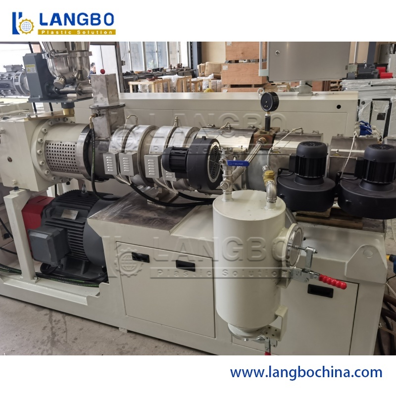 1. extruder: gebruik van conische dubbelschroefextruder, uniek ontworpen schroef, realiseert verkorting van de plastificatietijd, goede samenstelling en uitstekende plastificatie.