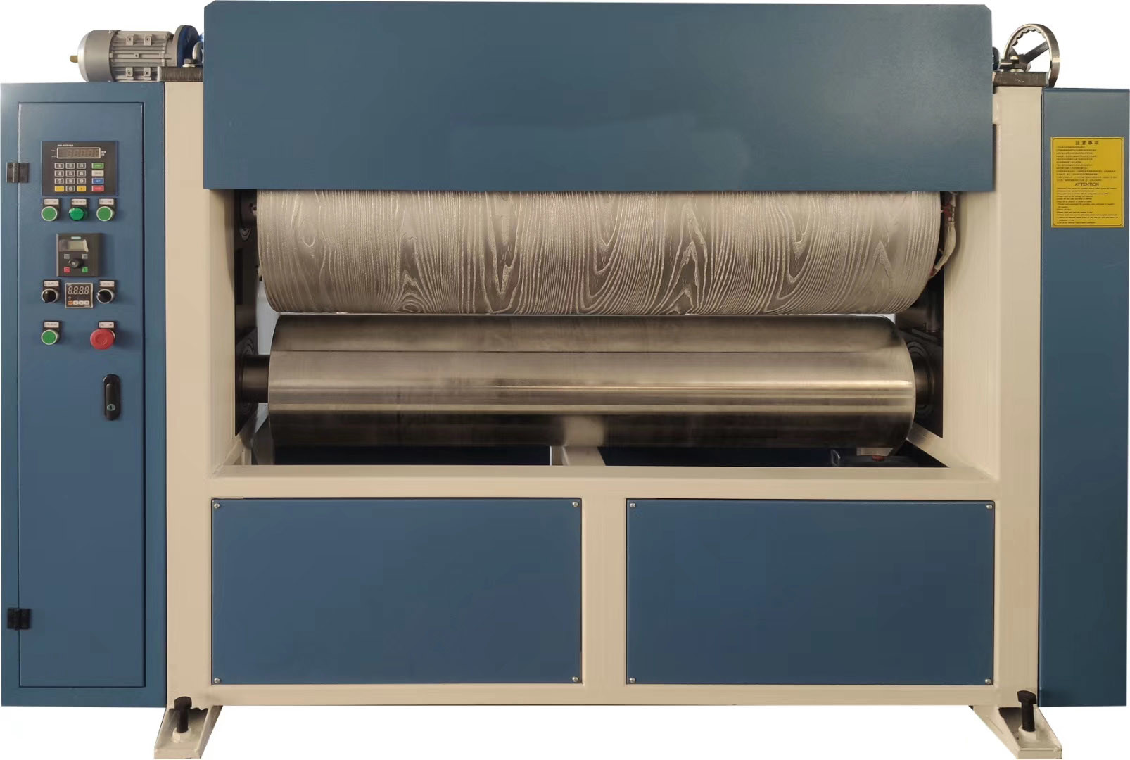 De machine is geschikt voor PVC, PE, PP en andere WPC-panelen, bamboe, composietpanelen, houten panelen, vezelplaten, schuimplaten en andere decoratieve embossingplaten voor buiten en binnen,met een gewicht van niet meer dan 50 kgHet is samengesteld uit machine frame, top & bottom verwarming apparaat, temperatuur controller, top & bottom reliëfrol,controlekast, cycloïde pinwheel reductiemotor, hydraulisch systeem.