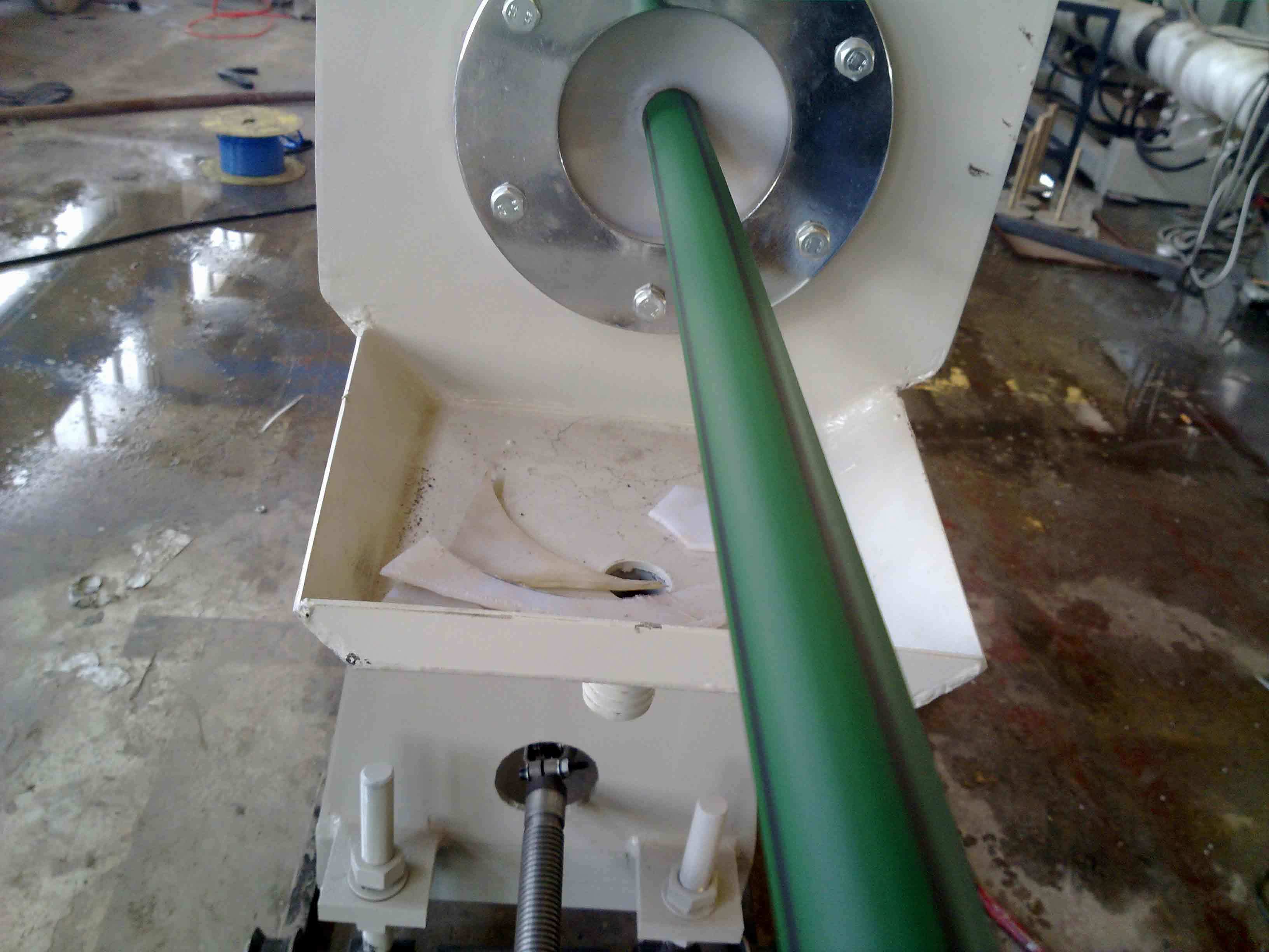 De gesmolten PPR wordt door een pijpmatrijskop geduwd om een continue pijpvorm te creëren.