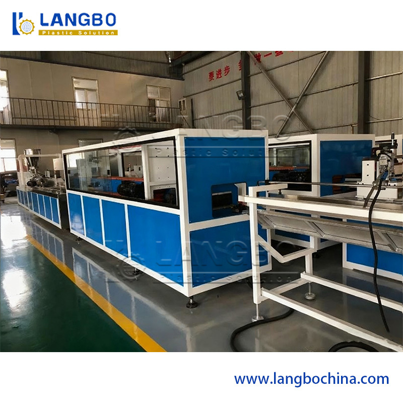 This PVC profile extrusion line adopts conical twin screw extruder, which is suitable for both PVC powder and PVC granules. It has degassing system to ensure the excellent material plasticization. The high speed mould is available, and it can largely increase the productivity.