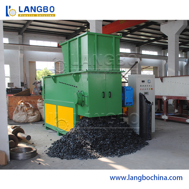 Voordat de HDPE-pijpextrusielijn soepel draait om pijpen te extruderen, moeten arbeiders de machine starten en alle details tijdens het hele proces aanpassen. In dit proces ontstaan veel verspilde pe-smeltklompen. Het zijn grote blokken en hard genoeg. Daarom kunnen ze niet met een crusher worden behandeld, maar alleen met een shredder. Onze shredder met enkele as heeft een hoge rotatiesnelheid en gevormde messen. Arbeiders plaatsen de verspilde smeltklompen via de opening en de deeltjes vallen uit de uitlaat.