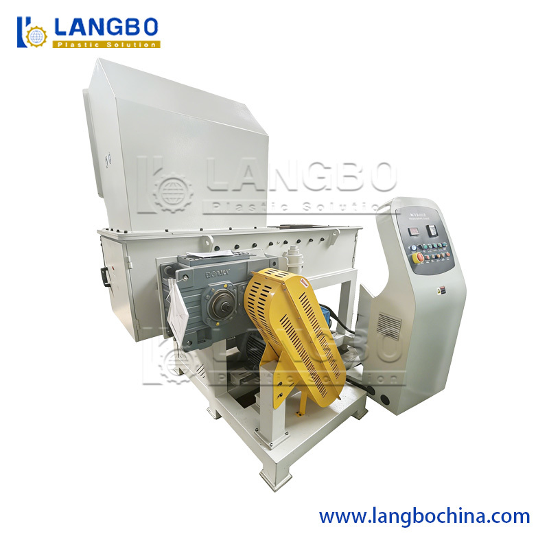 Voordat de HDPE-pijpextrusielijn soepel draait om pijpen te extruderen, moeten arbeiders de machine starten en alle details tijdens het hele proces aanpassen. In dit proces ontstaan veel verspilde pe-smeltklompen. Het zijn grote blokken en hard genoeg. Daarom kunnen ze niet met een crusher worden behandeld, maar alleen met een shredder. Onze shredder met enkele as heeft een hoge rotatiesnelheid en gevormde messen. Arbeiders plaatsen de verspilde smeltklompen via de opening en de deeltjes vallen uit de uitlaat.