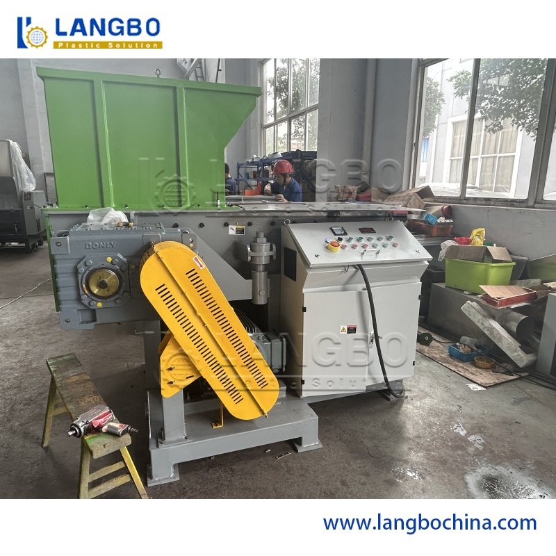 Voordat de HDPE-pijpextrusielijn in gebruik wordt genomen, moeten werknemers de machine starten en alle parameters gedurende het proces aanpassen. Tijdens deze procedure worden afval PE-smeltklonten gegenereerd als grote, harde blokken die niet kunnen worden verwerkt door standaard crushers. Onze enkelschachts shredder, met een hoge rotatiesnelheid en speciaal gevormde messen, verwerkt deze materialen efficiënt via de invoerpoort, waarbij deeltjes uit de uitlaat worden afgevoerd.