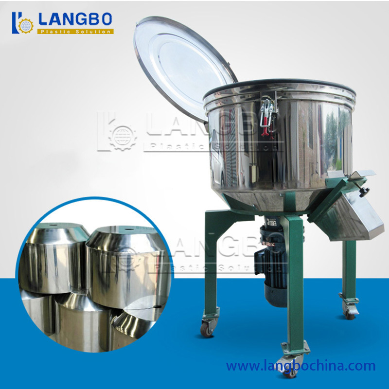 Ontworpen om continu materialen in de loop te tillen en te laten vallen.Dit ontwerp zorgt ervoor dat kunststofhars en kleur masterbatch zijn gelijkmatig gemengd met een uniforme kleurverdeling en elimineert dode zones.