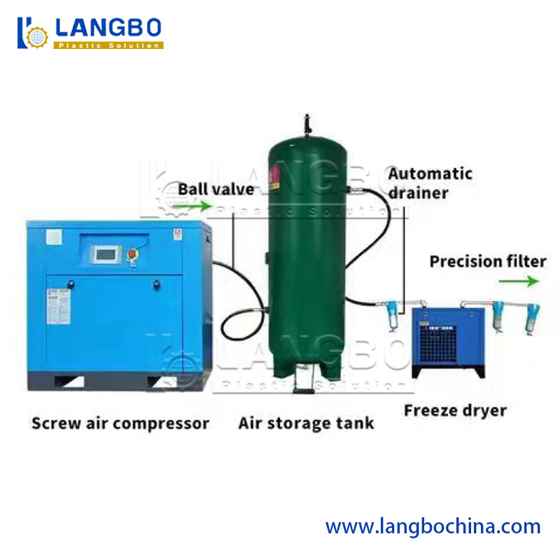 Efficiënte compressie en energiecontrole Met geoptimaliseerde compressie structuur en automatische drukregeling om een consistent vermogen te behouden en tegelijkertijd het energieverbruik te minimaliseren.Het systeem past de luchttoevoer aan op basis van de werkelijke vraag voor efficiënte productieomstandigheden.