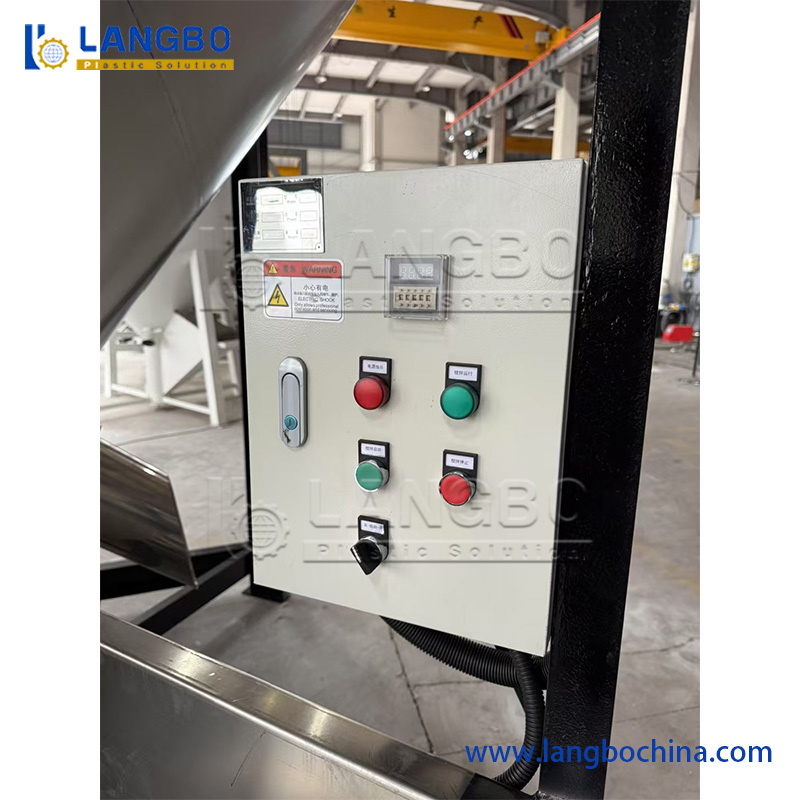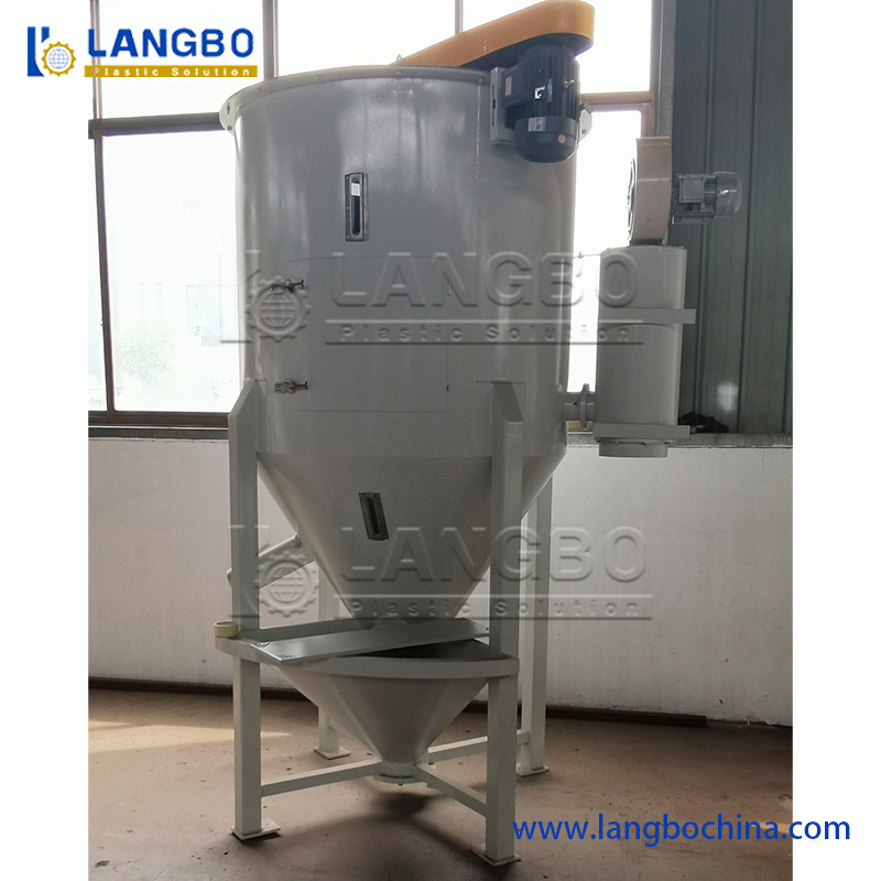 Verticale meng- en droogmachine met een hoog rendement, ontworpen voor HDPE- en LDPE-pellets en fijnstof, die voor een gelijkmatig meng- en drogingsresultaat zorgt.