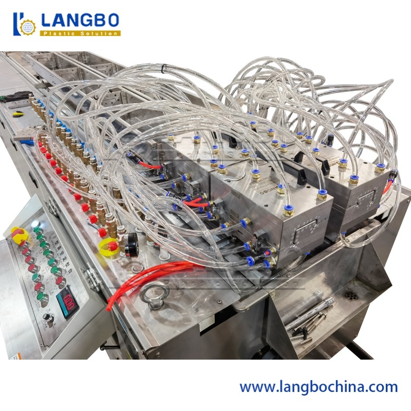 Gebouwd met een robuust stalen frame en een SUS 304 roestvrijstalen behuizing, integreert de kalibratietafel multidimensionale positieaanpassing. Strategische plaatsing van waterpompen en vacuümkalibrators zorgt voor snelle vormgeving en koeling van PVC profielen, met voldoende lengte voor volledige profielvorming.