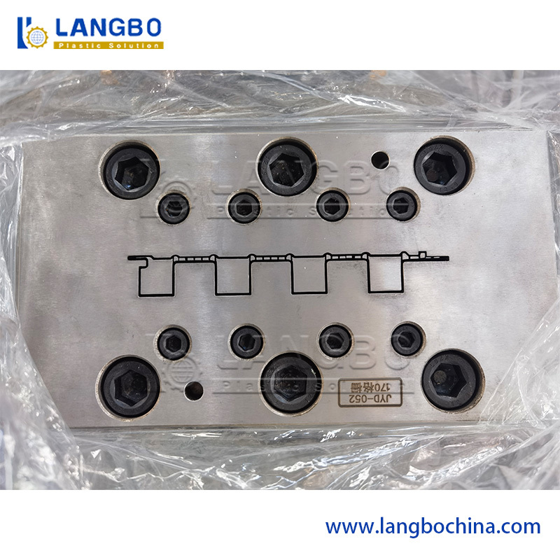 Dubbele streng malconfiguratie voor de productie van PVC kabelgoten met geoptimaliseerd kanaalontwerp, wat zorgt voor hoge doorstroming en precieze profielproductie.