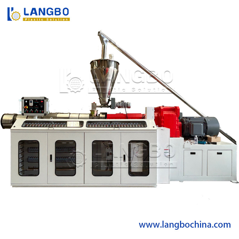 Loader→Konieke dubbelscrew extruder→Mould→Vacuümvormende watertank→Spraykoeltenk→Haul-off machine→omkeerbare stapler